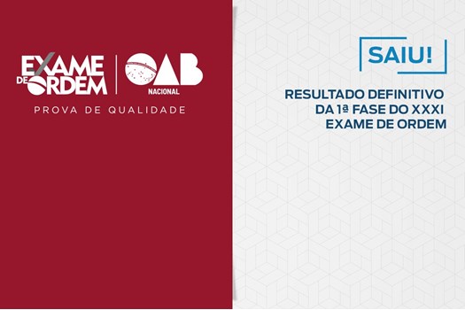 Foi divulgado nesta quinta-feira (12) o resultado definitivo da 1ª fase do XXXI Exame de Ordem Unificado. A relação com os nomes dos aprovados na prova objetiva, após interposição de recursos, e convocados para a prova prático-profissional está disponível no site do Conselho Federal da OAB.